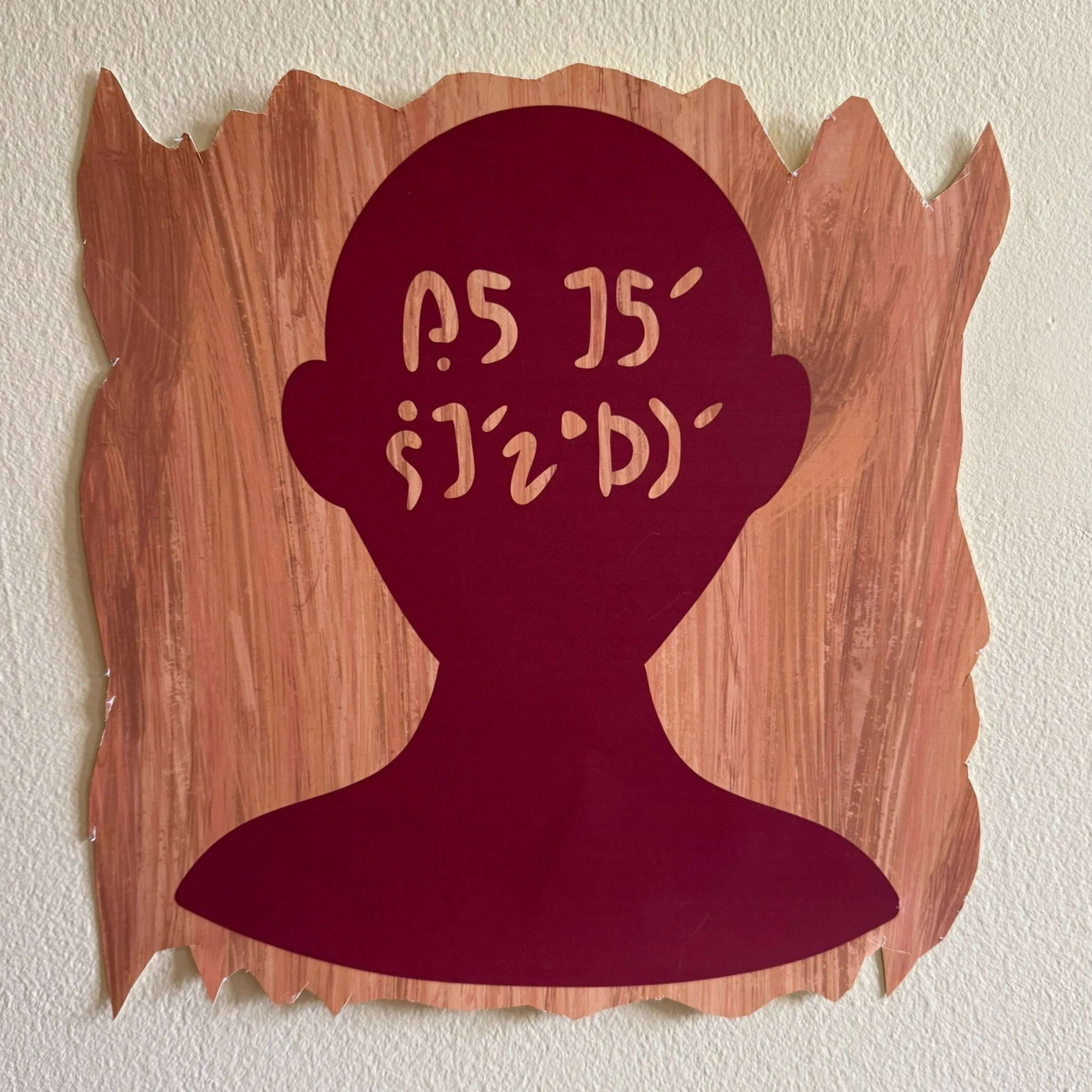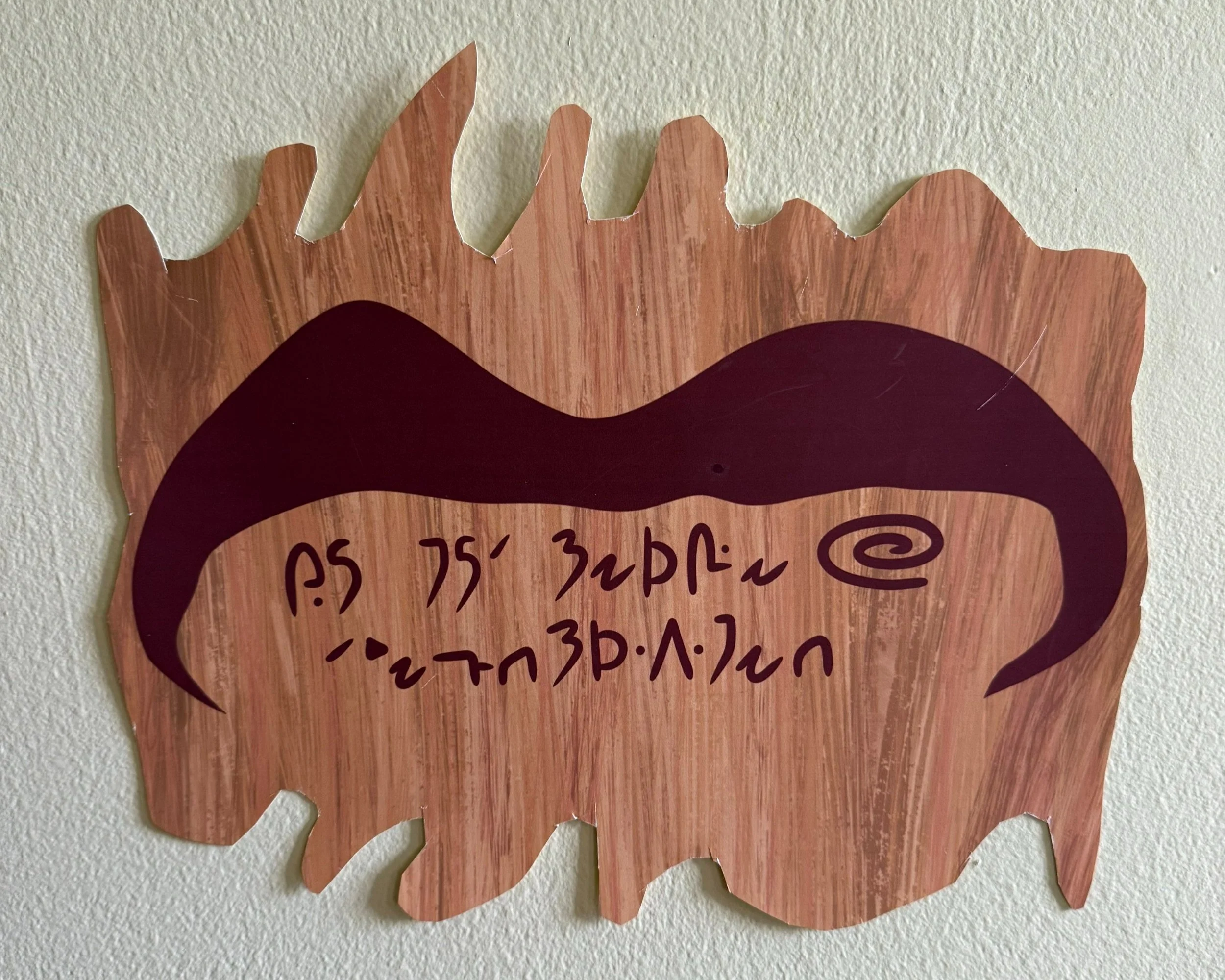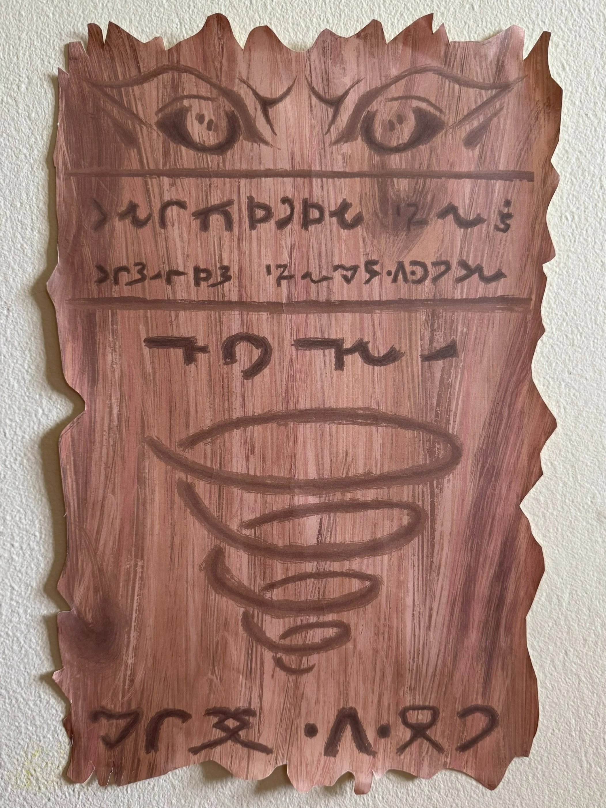 silhouette of spencer and skinner’s butte and the birthplace of perinians marked with a swirl, painted with human blood. perinian translates to “do not leave treshlamneh”.