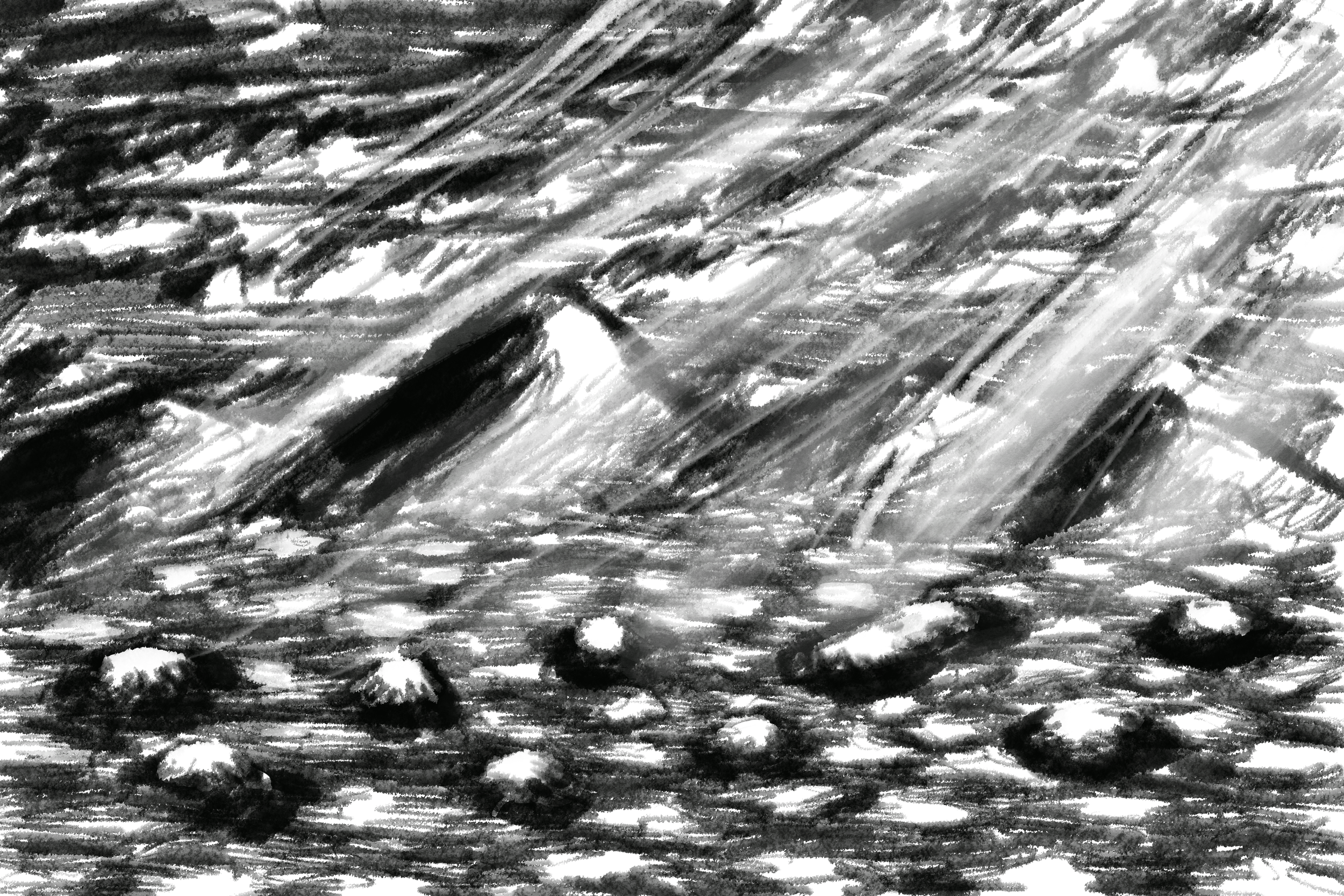 archaeologist charcoal sketch of what they deem to be eugene above water in the late 1800s.