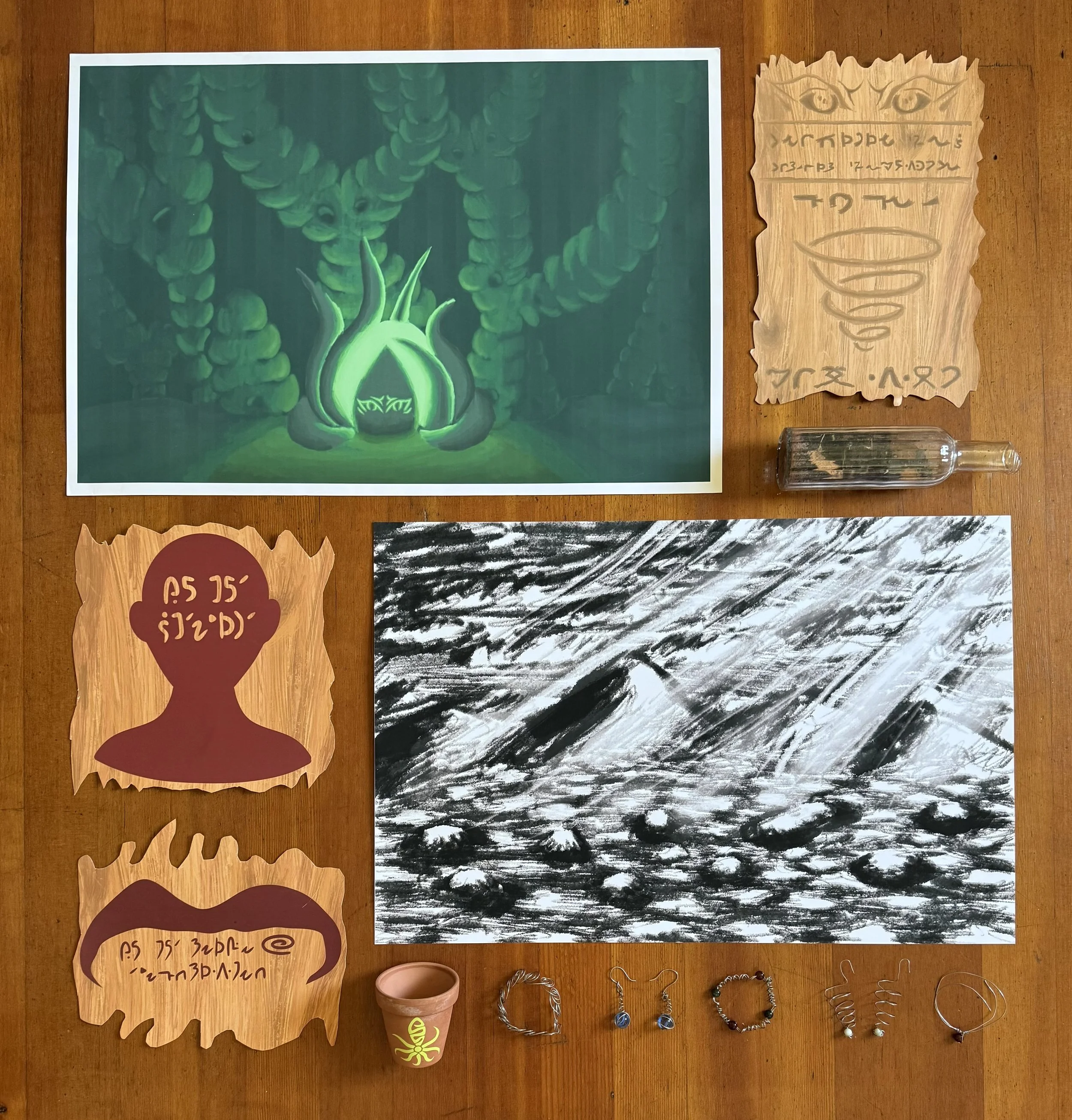 Perinians are swamp-like creatures who are able to live both in and out of water. They eat bullfrogs, fish, dragonflies, and despise the human race. Included within this project are artifacts from the Perinians as well as documentation from modern-day archaeologists studying these extinct creatures.